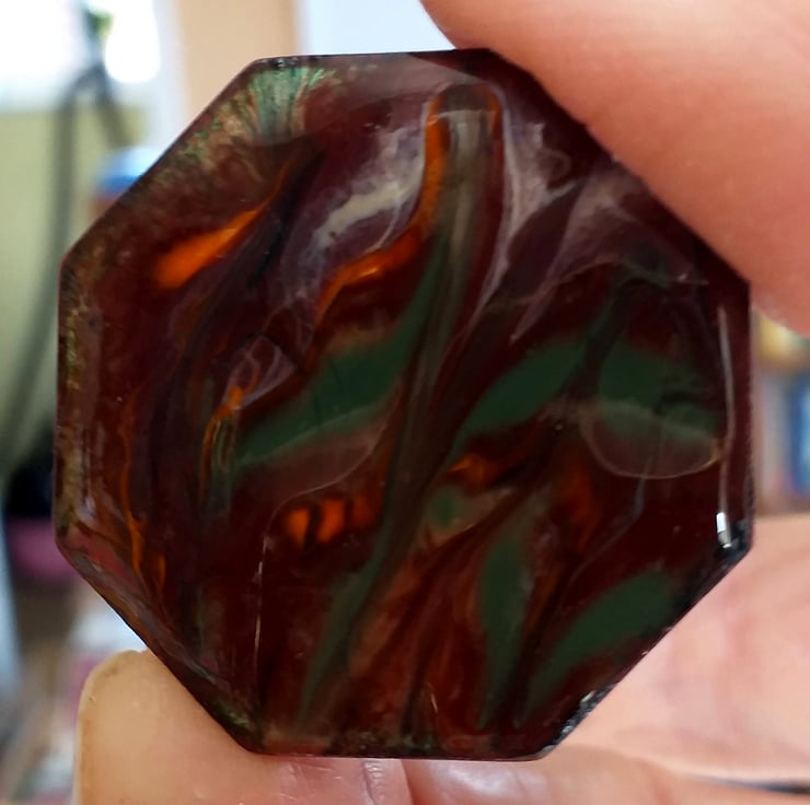 The octagon measures 36mm side to side. I have soldered a 26mm brooch bar to it.