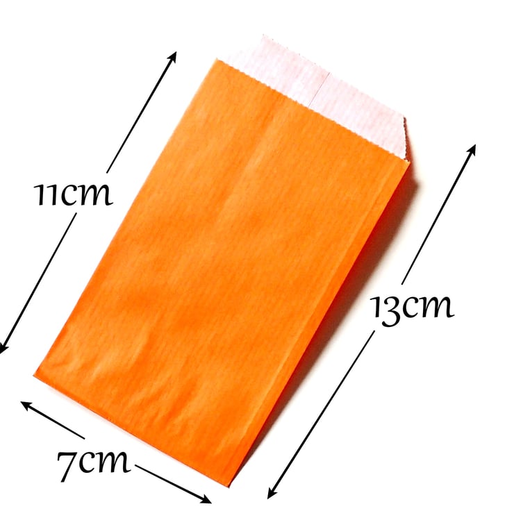 Orange kraft paper bags - dimensions 11cm x 7cm (approx)