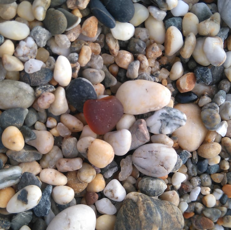 Sea glass comes in many colours, the most common being sea foams (light green/blue), greens, whites, ambers and blues; rare colours are reds, purples, yellows, pinks, oranges and blacks.