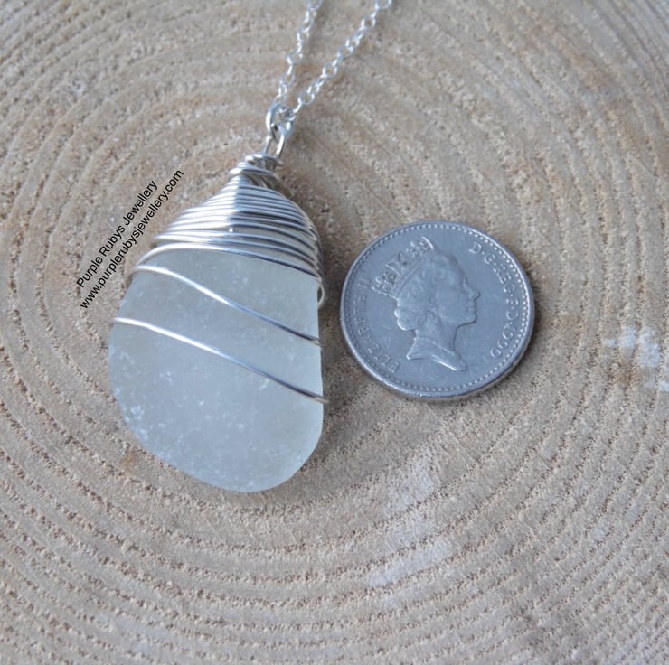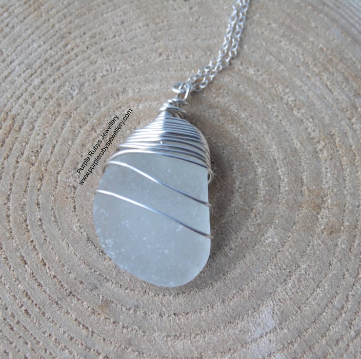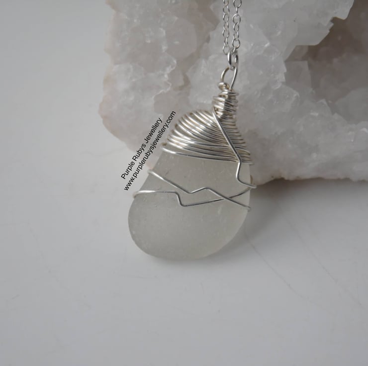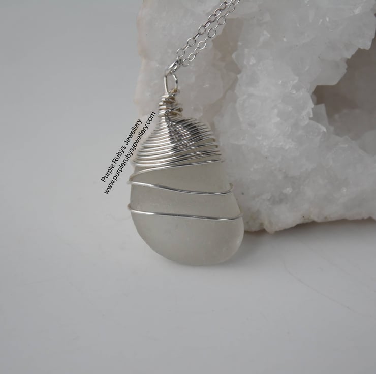 A beautiful, smooth piece of white Cornish sea glass wire wrapped with silver wire.