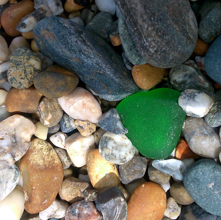 Sea glass comes in many colours, the most common being sea foams (light green/blue), greens, whites, ambers and blues; rare colours are reds, purples, yellows, pinks, oranges and blacks.