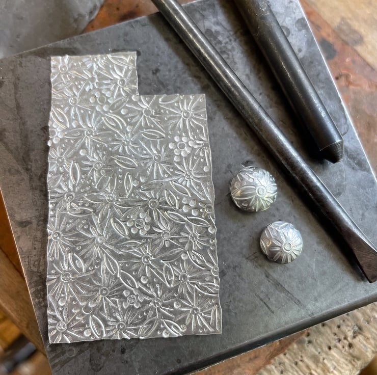 The large silver focal bead was made from silver that I have hand stamped with a floral pattern.
