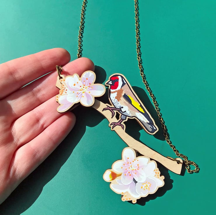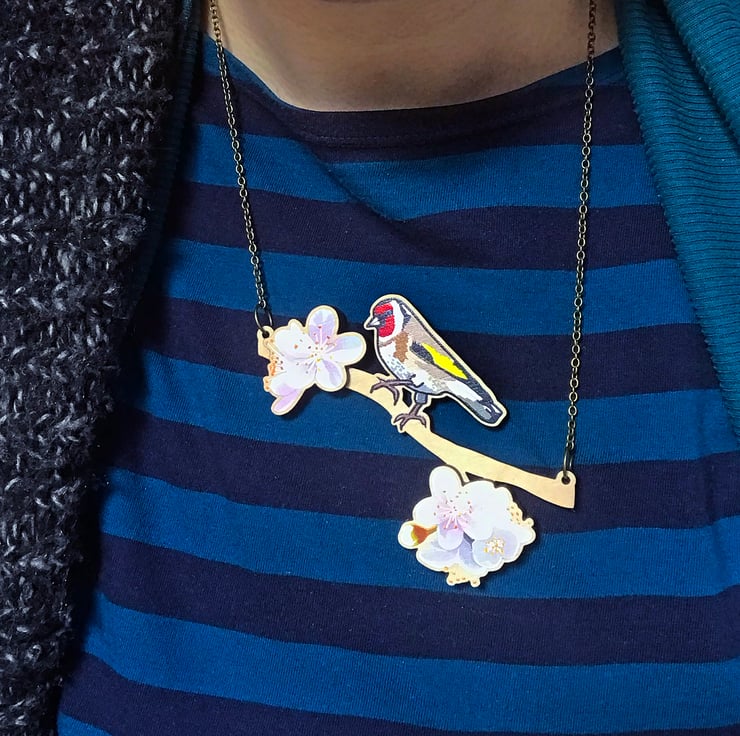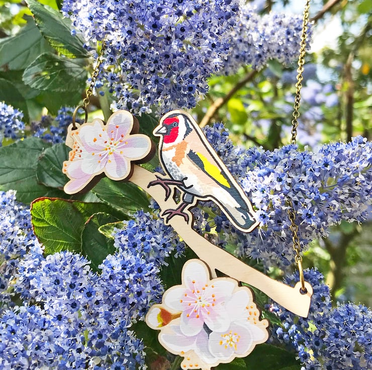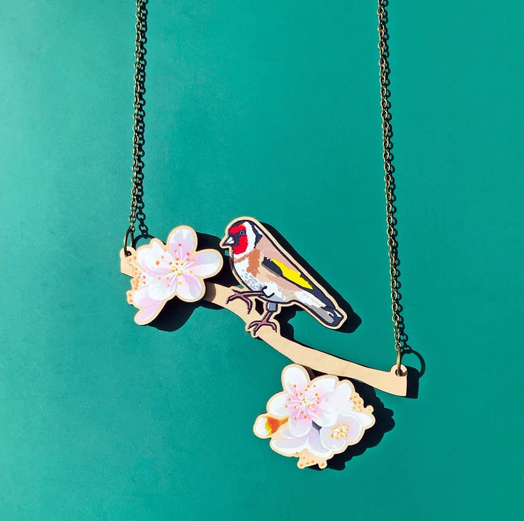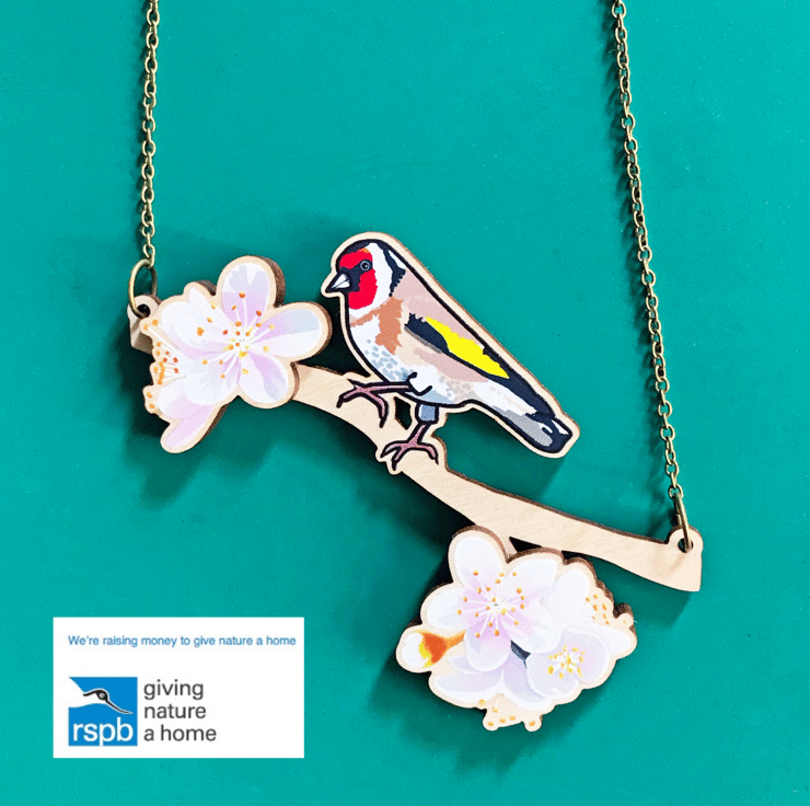 This goldfinch has just flown in and found a beautiful branch of cherry blossom to perch on! My 'Birds of a Feather' collection is inspired by our many feathered garden friends. £1 from each item of the Birds of a Feather collection sold will be donated to the RSPB, a registered charity in England and Wales, number 207076, and in Scotland, number SC037654