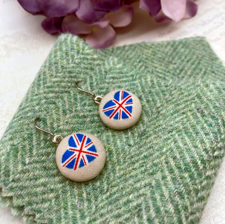 I love to source fun themed fabrics to make my fabric button jewellery with! When I saw this Jubilee themed fabric, it looked so fun and cute I thought that it would make a great jubilee range of jewellery!