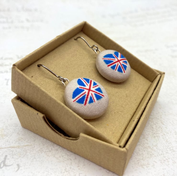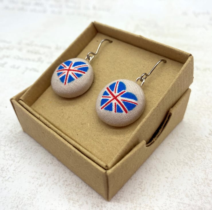 These earrings will come to you safe and carefully packaged in a UK Made eco-friendly recycled kraft card jewellery box - Perfect for wearing to that street party, for lovers of the British Flag - or to keep as a gift for yourself!