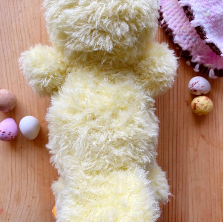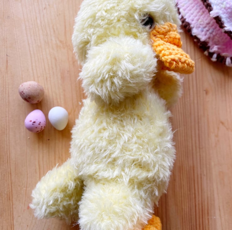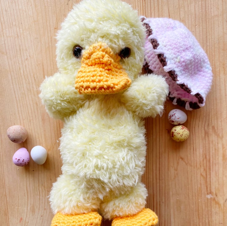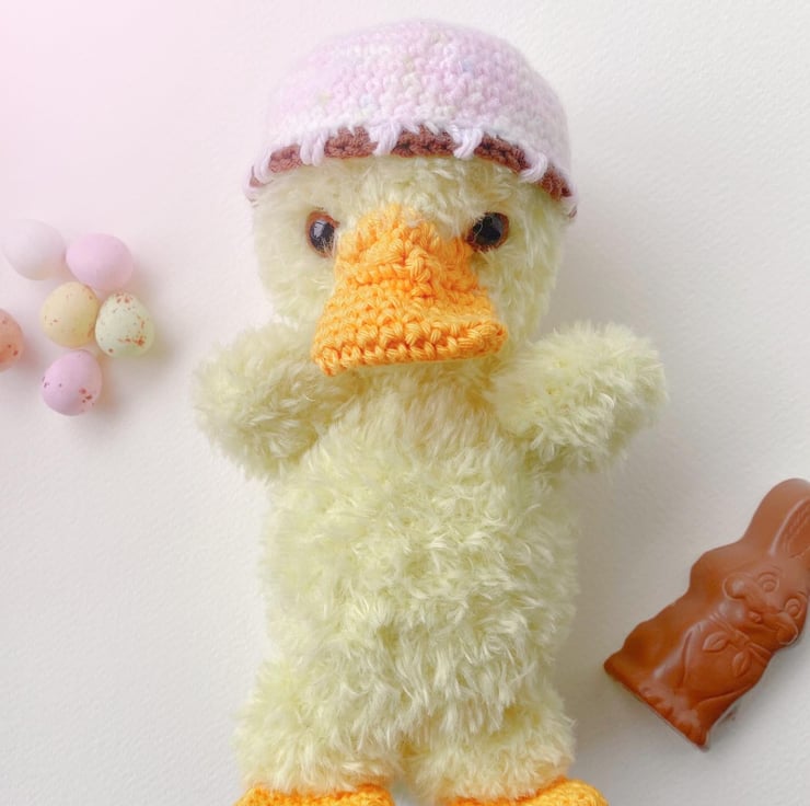 This cute little duck is ready for Easter or any party! She is wearing her mini egg hat which can be removed.