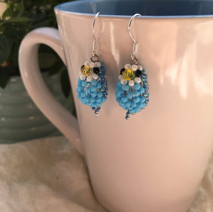 These pretty budgies are made by hand weaving with Japanese seed beads.