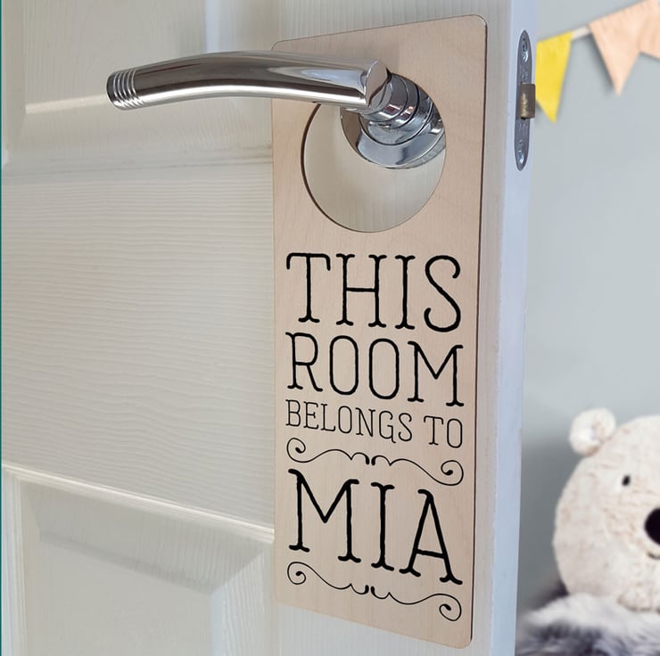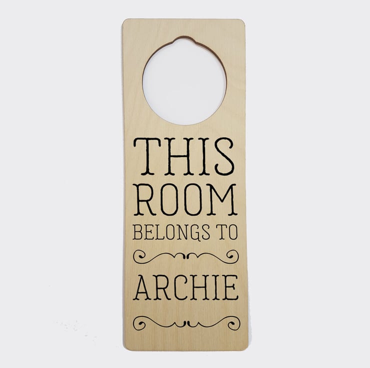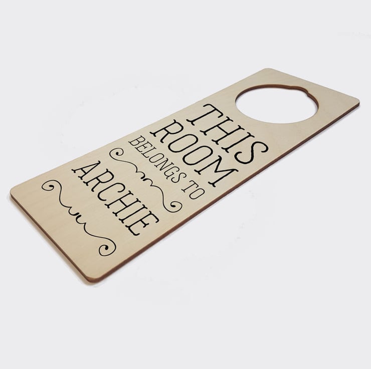 The door sign is made to order, and features a first name up to 10 characters long (spaces between words count as characters).