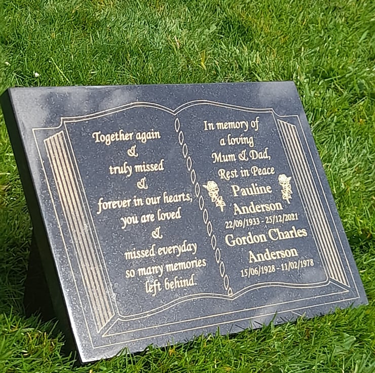 Large Engraved Personalised Black Granite Memorial Grave Plaque (Price includes personalisation)