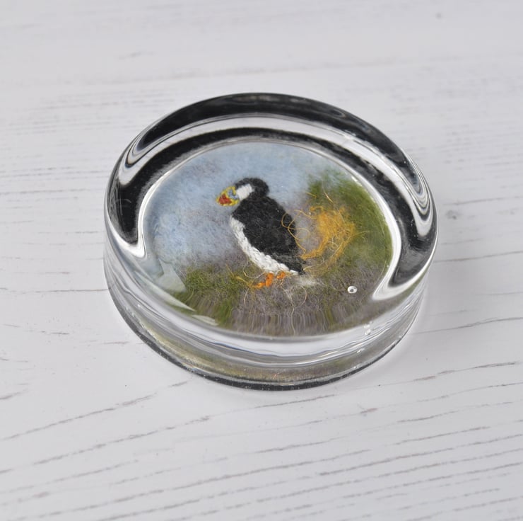 The paperweight you receive may be slightly different to the one in the photo as I create other puffin paperweights. So please be aware that because each item is handmade both the background, positioning and bird detail will be slightly different.