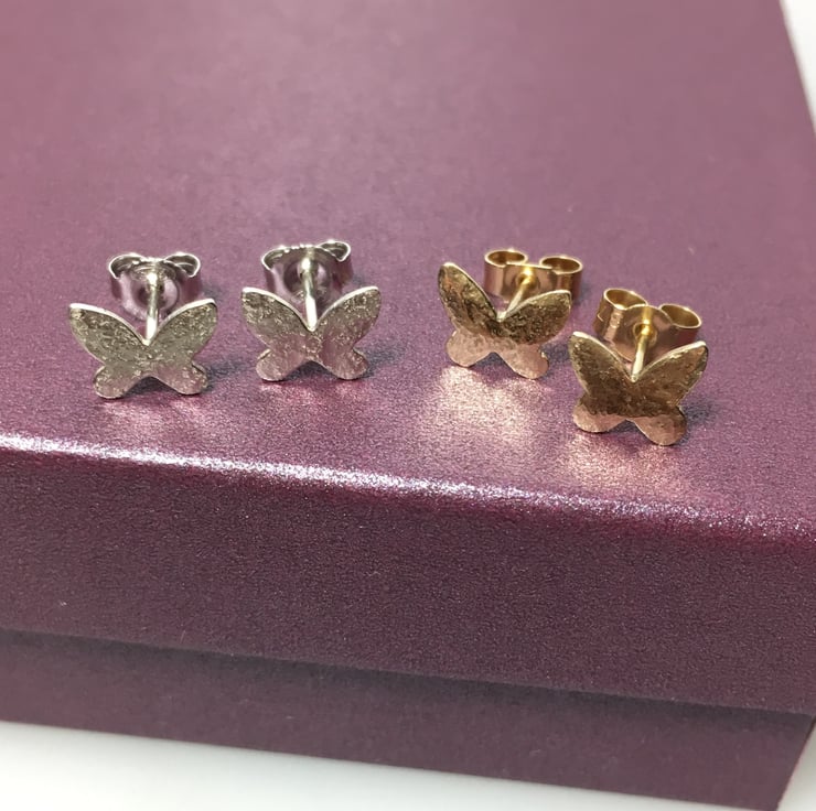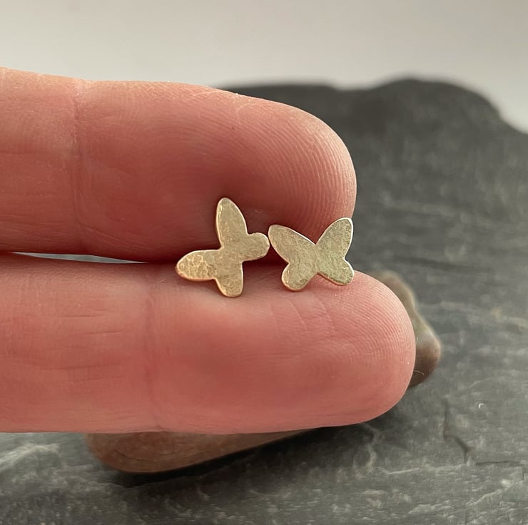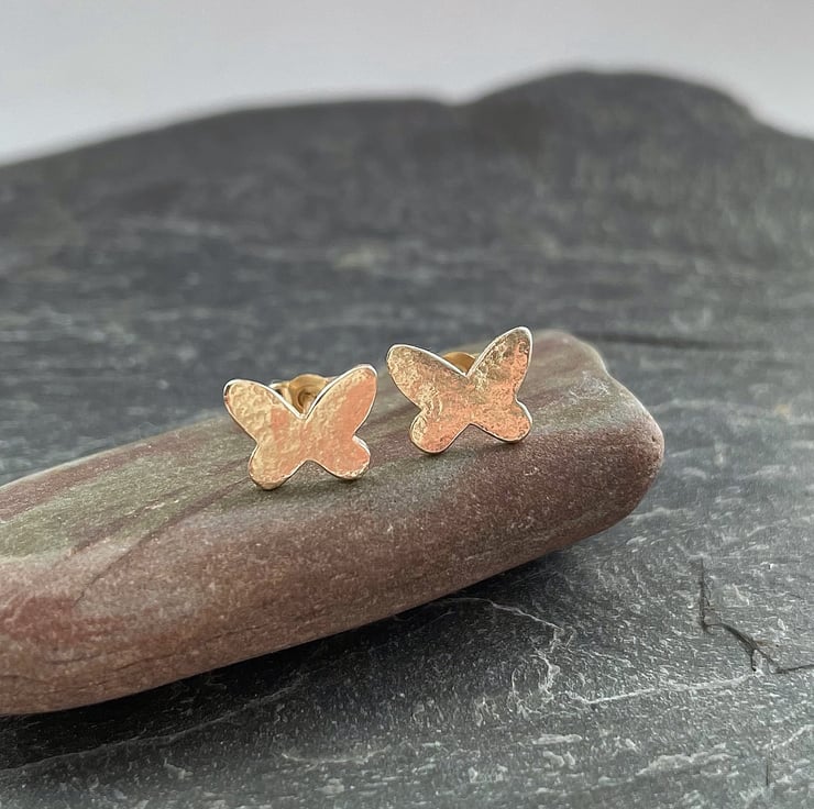 Small textured 9ct yellow gold earrings in the shape of butterflies. Suitable for girls of any age.