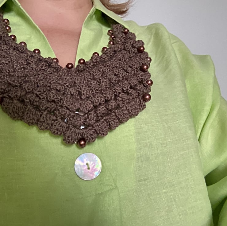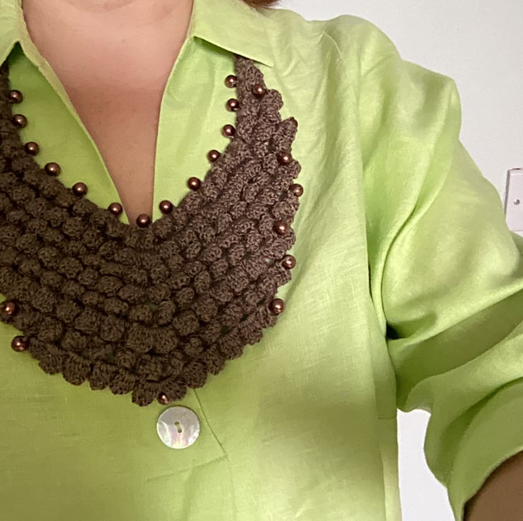 This handmade crochet necklace fits for any style. It is a grate accessory for both daily casual use and for special moment. Will be a centre piece jewellery for any outfit.