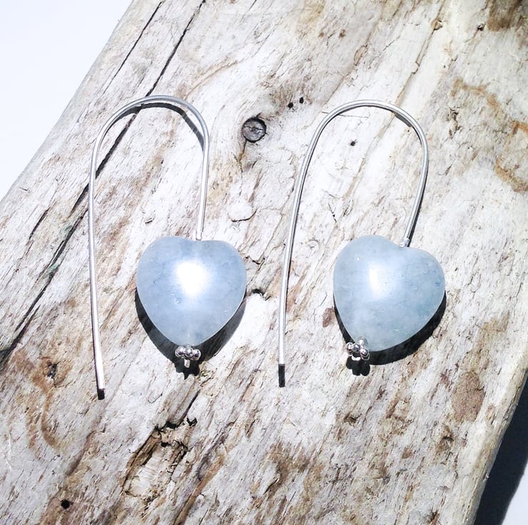 I have made these beautiful earrings from aquamarine gemstone heart beads on handmade sterling silver loops.