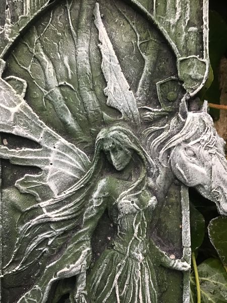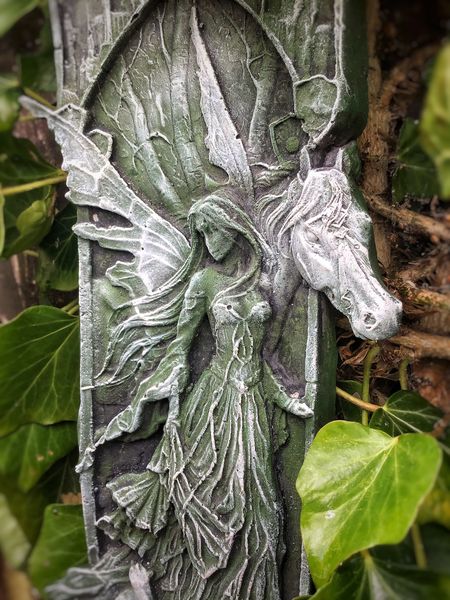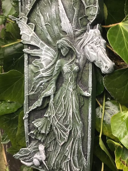 This enchanting magical Angel & Horse wall ornament sculpture is a beautiful Cast Stone decorative piece, perfect for the garden / outdoors or in the home. She's ready to hang up on a tree, wall, fence, or shed. A beautiful gift for that special someone.