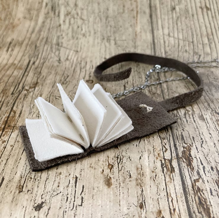 Please note, some of my standard leather colours are unavailable for these little book pendants as they're simply too thick for such a tiny journal. If you can't find the colour you'd like in the drop down, this is the reason why!