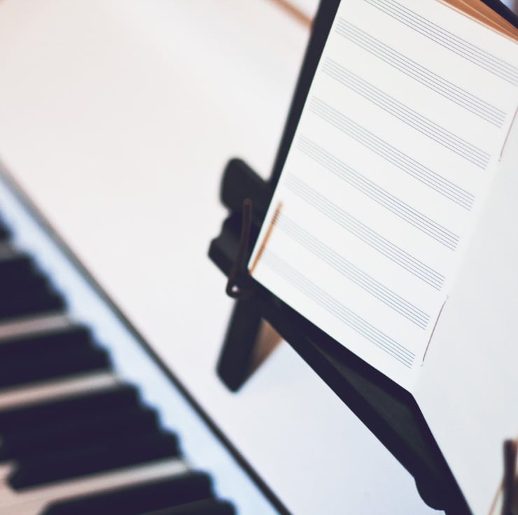 A6 music manuscript journal, hand-bound into soft leather in your choice of colour. It secures using a slither of leather attached to the cover flap which wraps around the journal and tucks in neatly to keep your work safe and sound. The pages in this journal are lined with music staff paper. There are 4 different options to select from, you can see these amongst the images. Each option shows the book pages as they will appear with the book open.