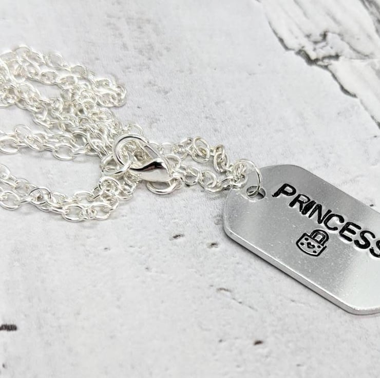 Handstamped Princess padlock image Necklace, each piece is unique and handmade to order for every customer. Items can be always be customised, if you have any questions please contact us in advance.
