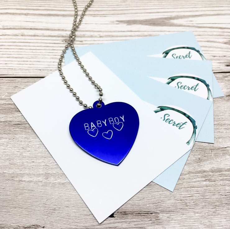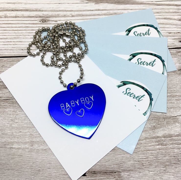 This is a "BABY BOY" necklace- with a 26inch longer length black ball chain, can be worn discreetly under clothing.