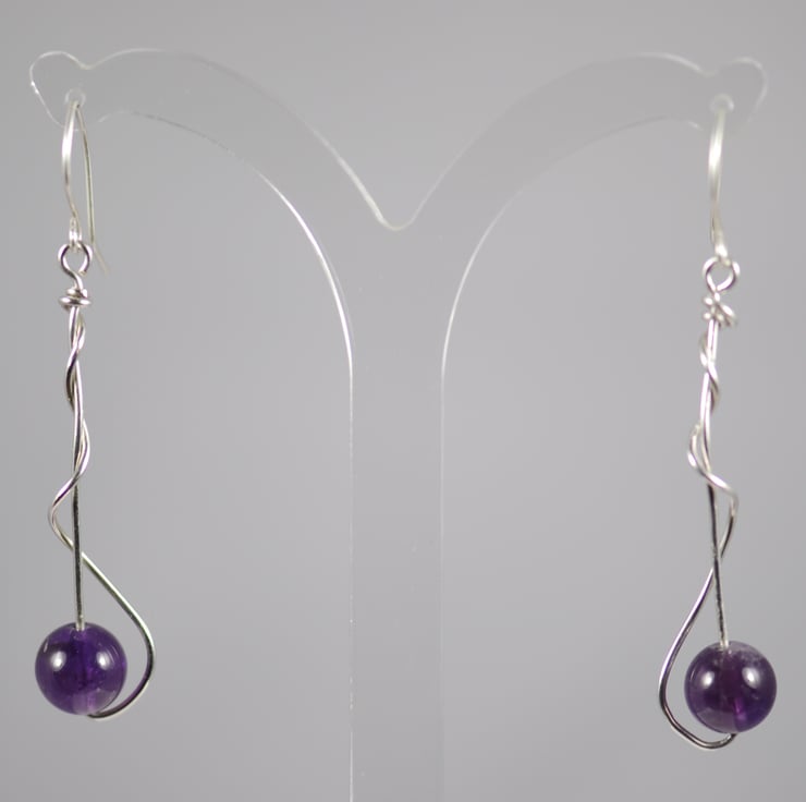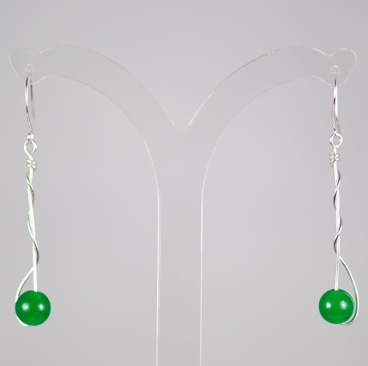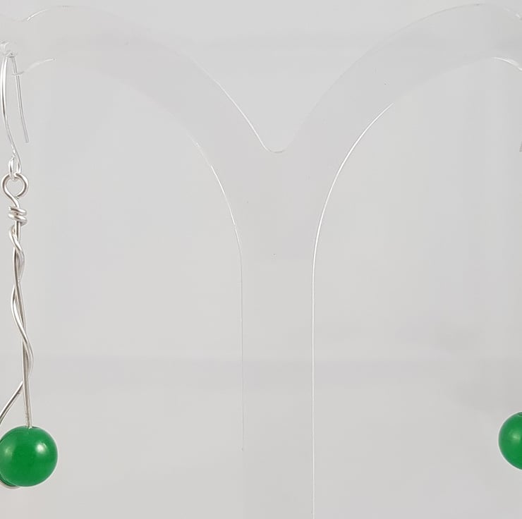 Examples shown here is made using amethyst and green jade beads, the silver drop is approx.4cm, and the full drop from the top of the ear wire to the bottom of the drop is approx. 5cm.