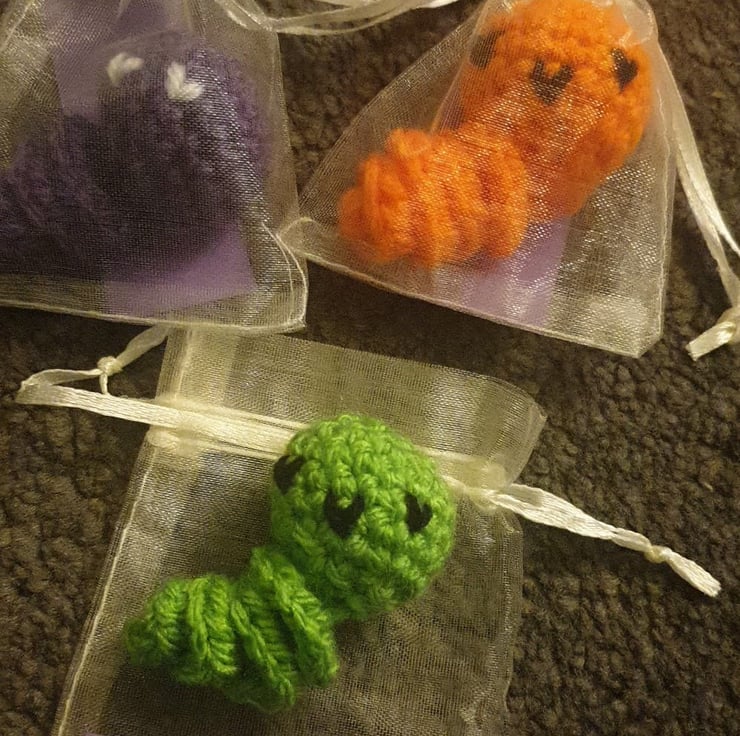 The item for sale is a hand made worry worm which arrives in a little organza bag along with the poem printed out on a piece of card which is popped inside the bag. The colour of the card the poem is printed on my vary.