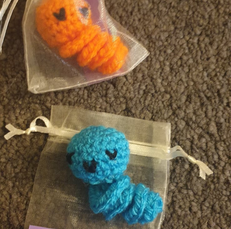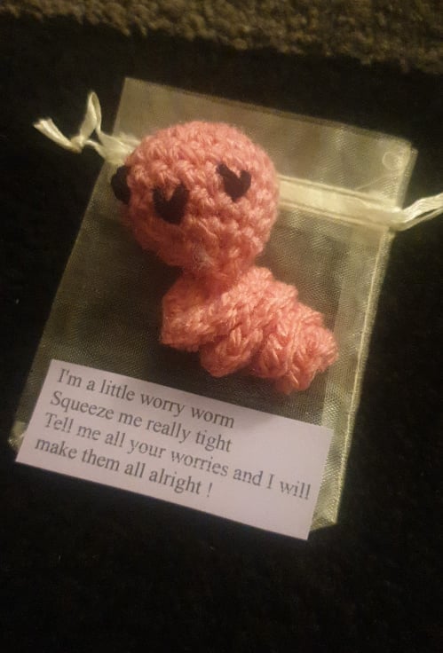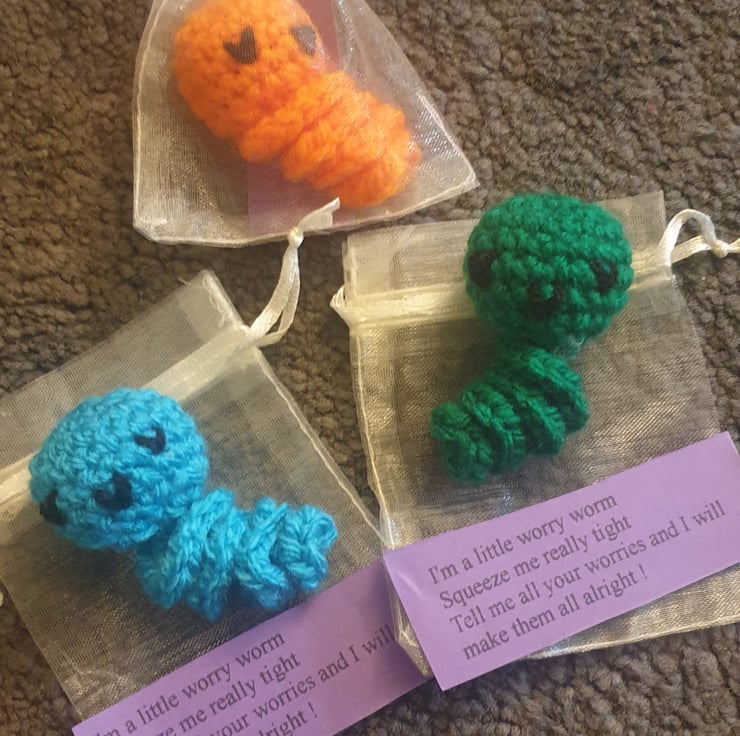 I am a keen crocheter and understand how much children love little cute items. Recently children sadly seem to be suffering from worries they should not have and I made one of these which really helped a child who popped it in their pocket whilst at school. Adults also find them a huge comfort as something to hold and twiddle with.