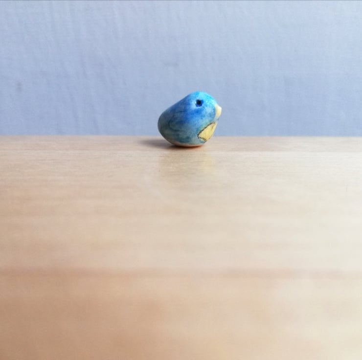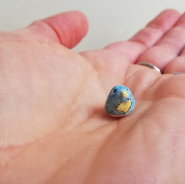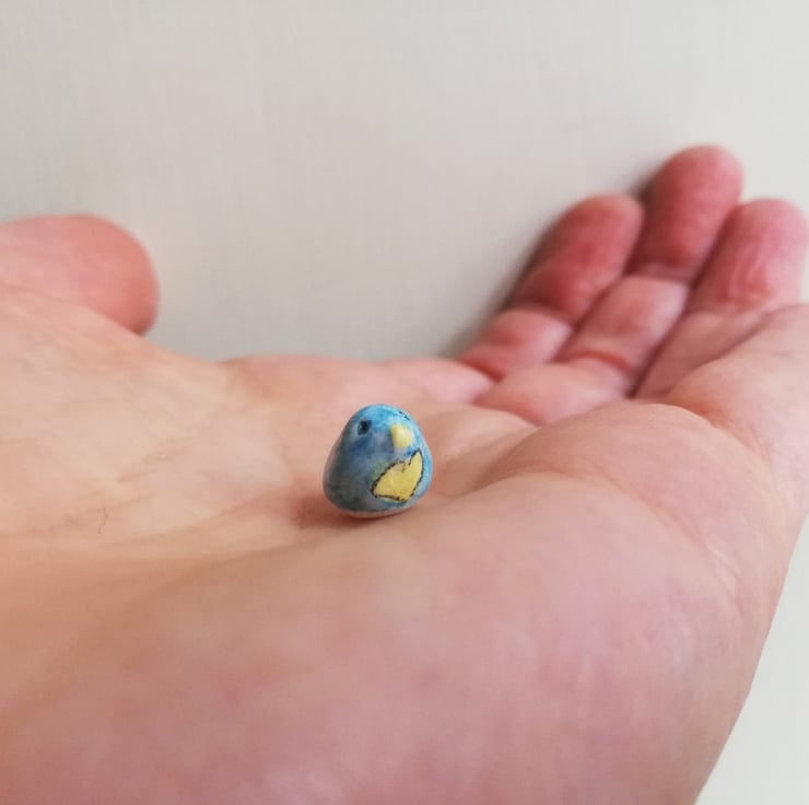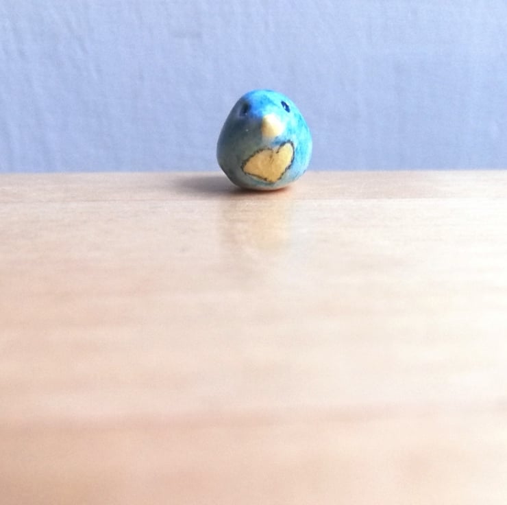 Little blue and yellow bird ornament. Handmade and hand painted with blue bird with yellow heart. All profits will go to the red cross to support Ukraine.