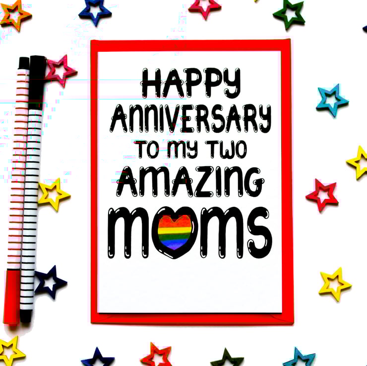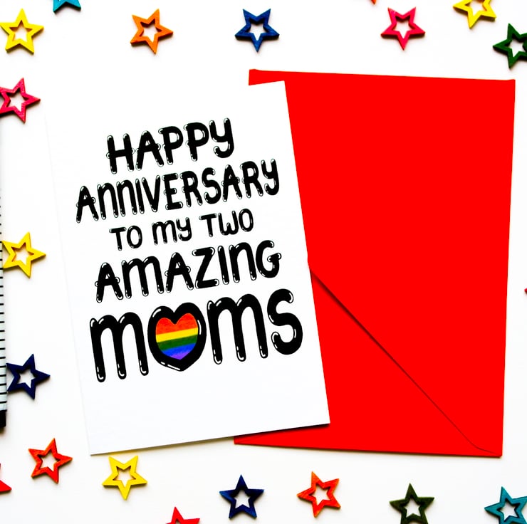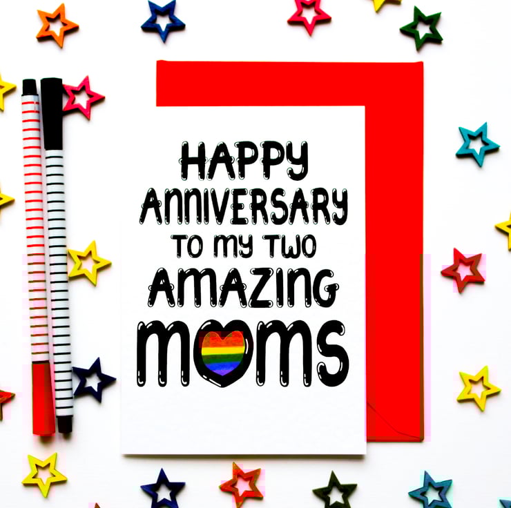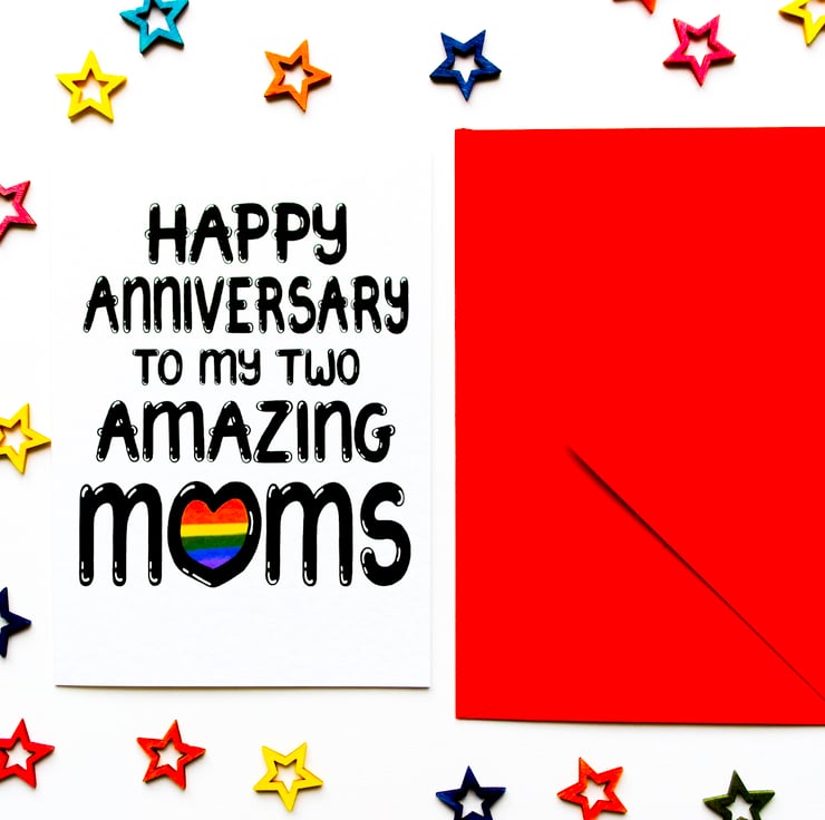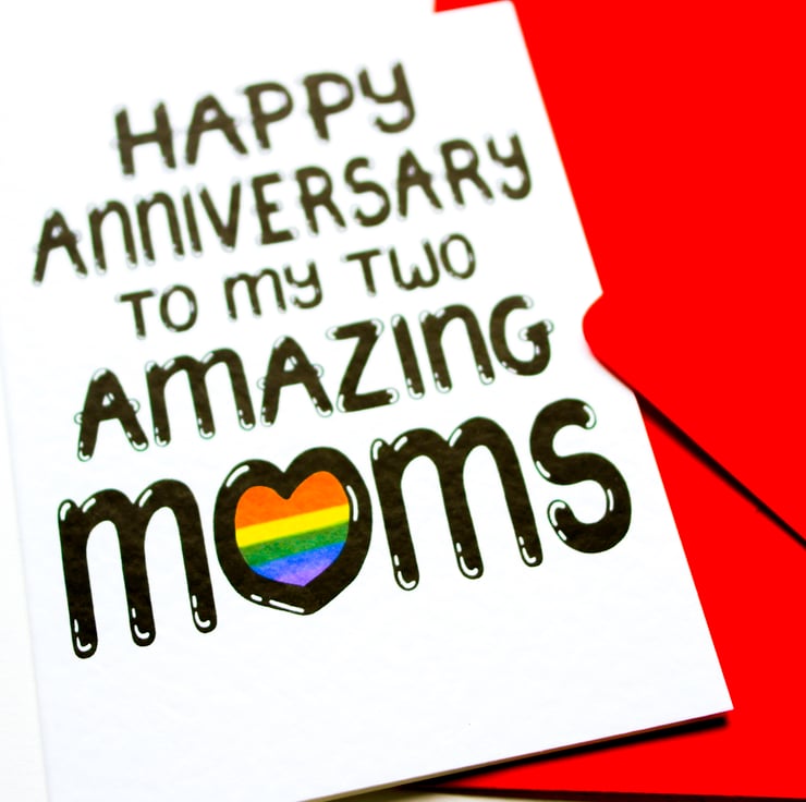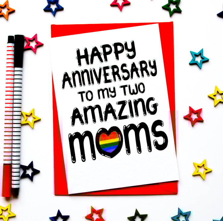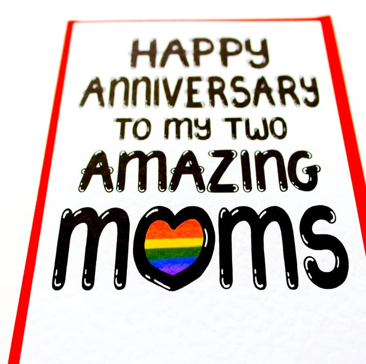 Greeting on front: HAPPY ANNIVERSARY TO MY TWO AMAZING MUMS