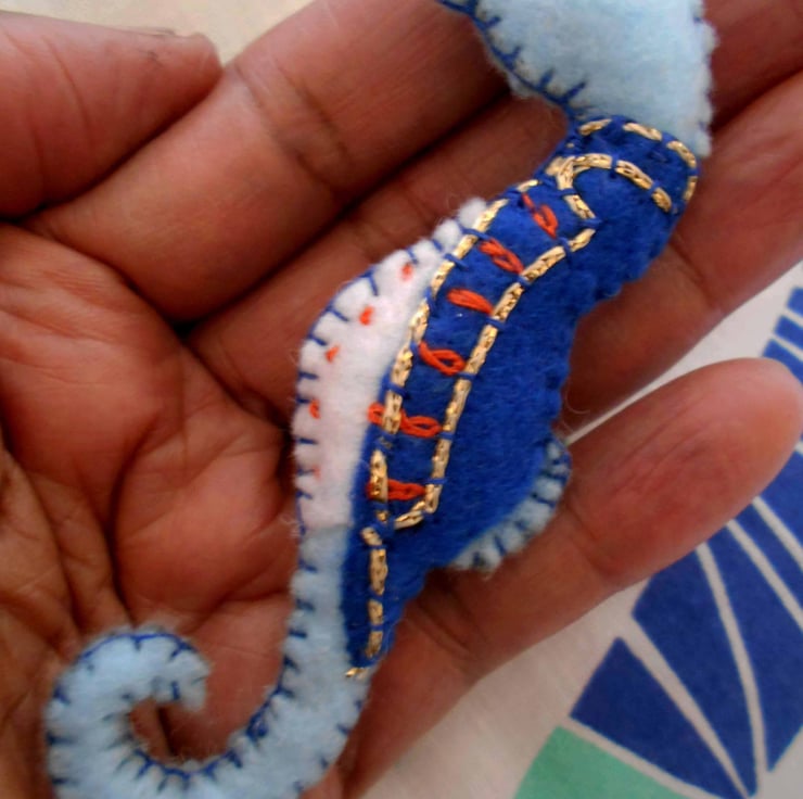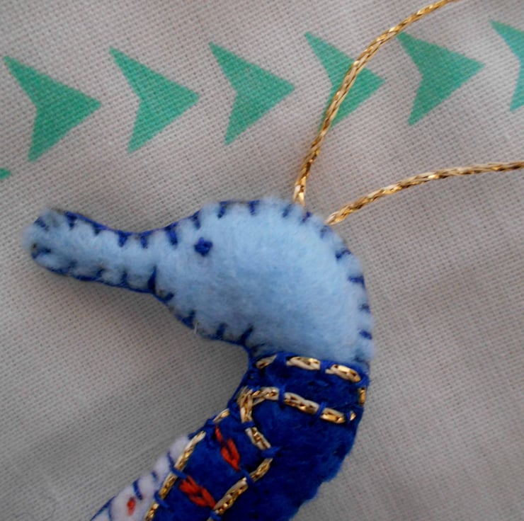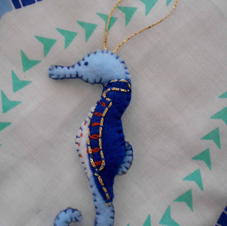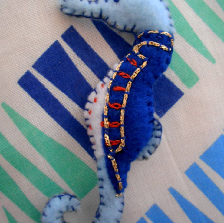 If you love seahorses, and like quirky, handmade decos, then you may just like this chap in his handembroidered dapper naval jacket and waistcoat!