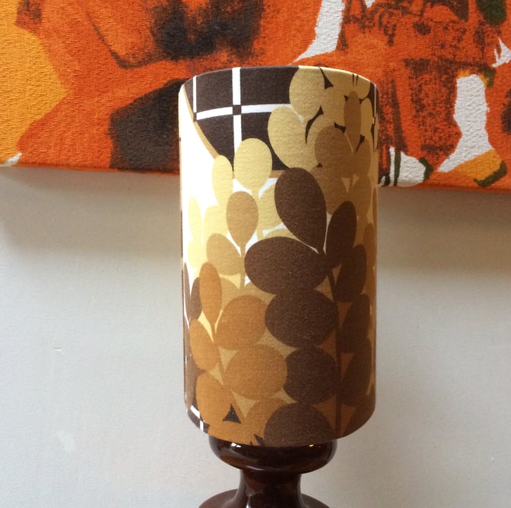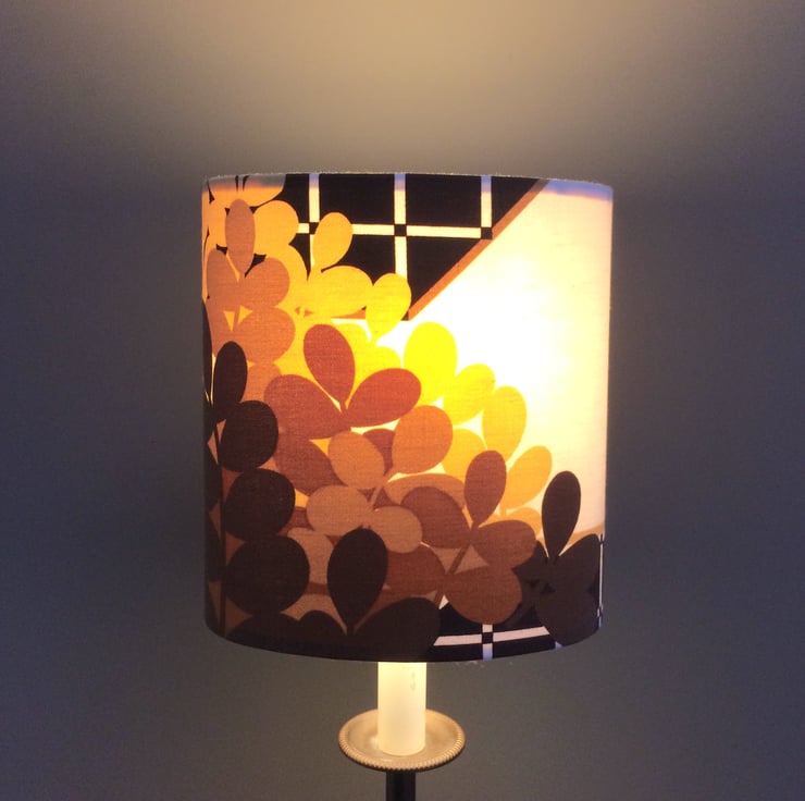 MoonGlow Op Art MOD Mustard Brown 60s 70s Bevis Vintage fabric Lampshade