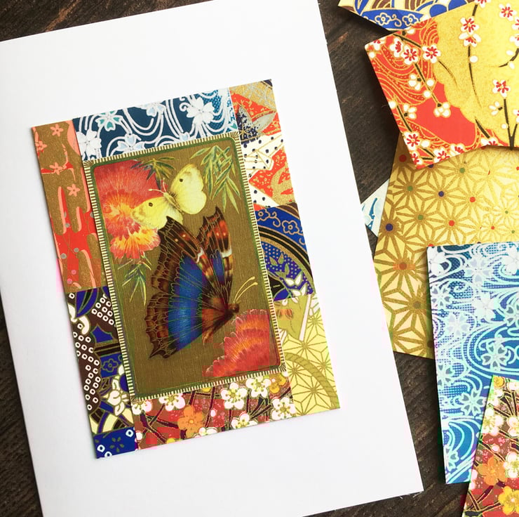 I've used a selection of Japanese origami papers to border it which have touches of metallic gold that adds a bit of sparkle.