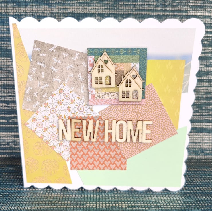 Bespoke individually handmade new home card using the best quality card with a unique design. Using individually selected wooden embellishments to personalise each card. This card comes with a transparent paper inlay perfect for your own personalised message. All cards come with a unique wax stamp on the back telling you whos designed the card.