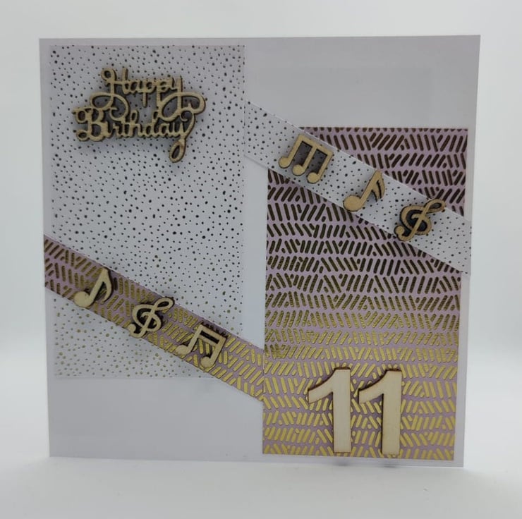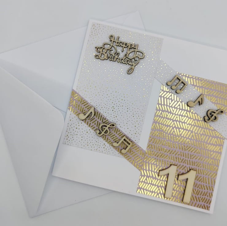 Bespoke individually handmade birthday card using the best quality card with a unique design. Using individually selected wooden embellishments to personalise each card. This card comes with a white paper inlay perfect for your own personalised message. All cards come with a unique wax stamp on the back telling you whos designed the card.