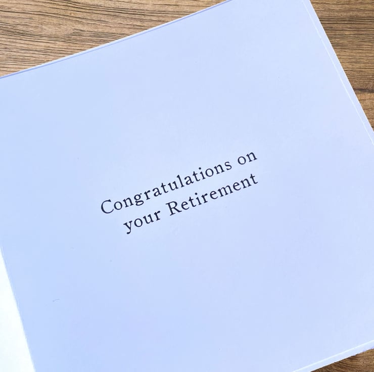 Standard Sentiment: This will be printed in the centre of the insert and will differ for each listing. For this card the sentiment will read: "Congratulations on your Retirement."