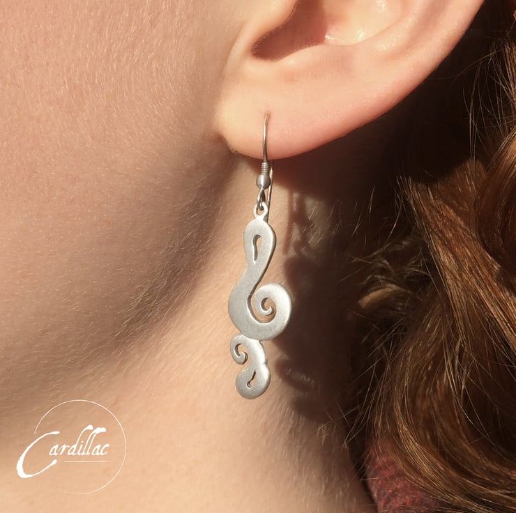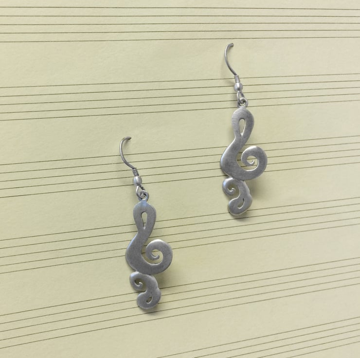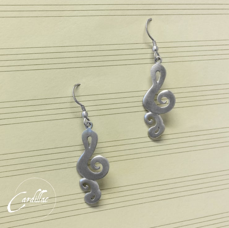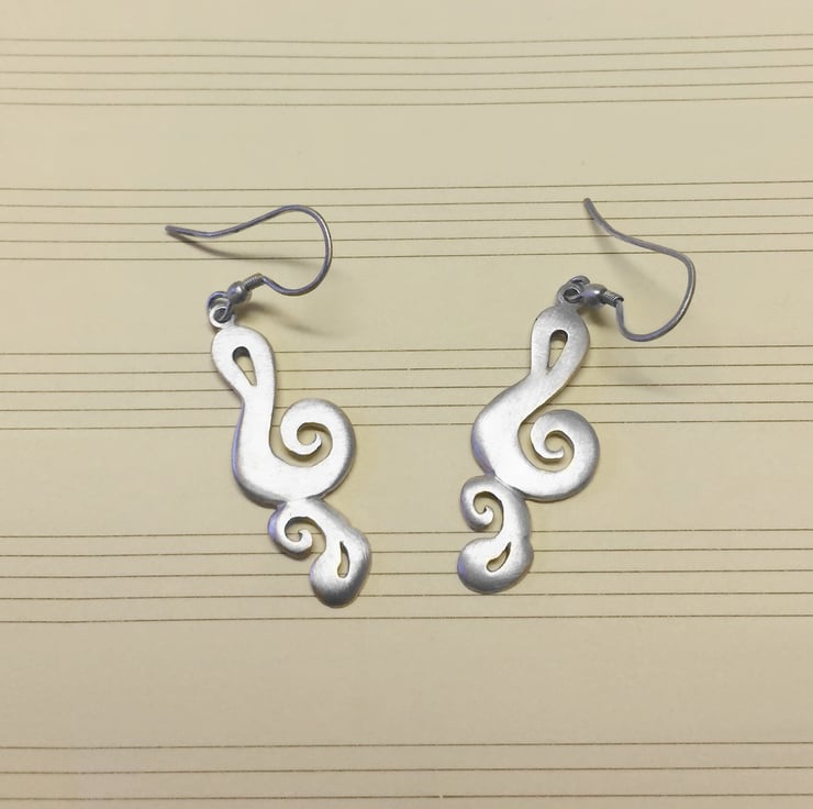 These are fun treble clefs in a paisley style. They are cast satinised sterling silver, from a pattern that I made some years ago, and contain my Sheffield hallmark.