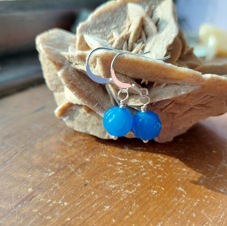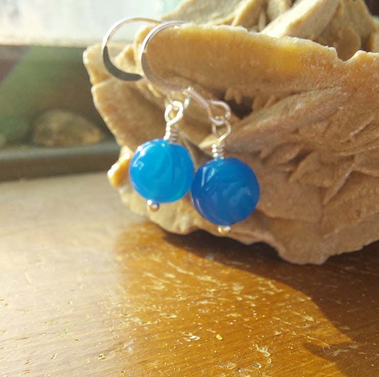 Sterling Silver Blue Agate Carved Rose Earrings