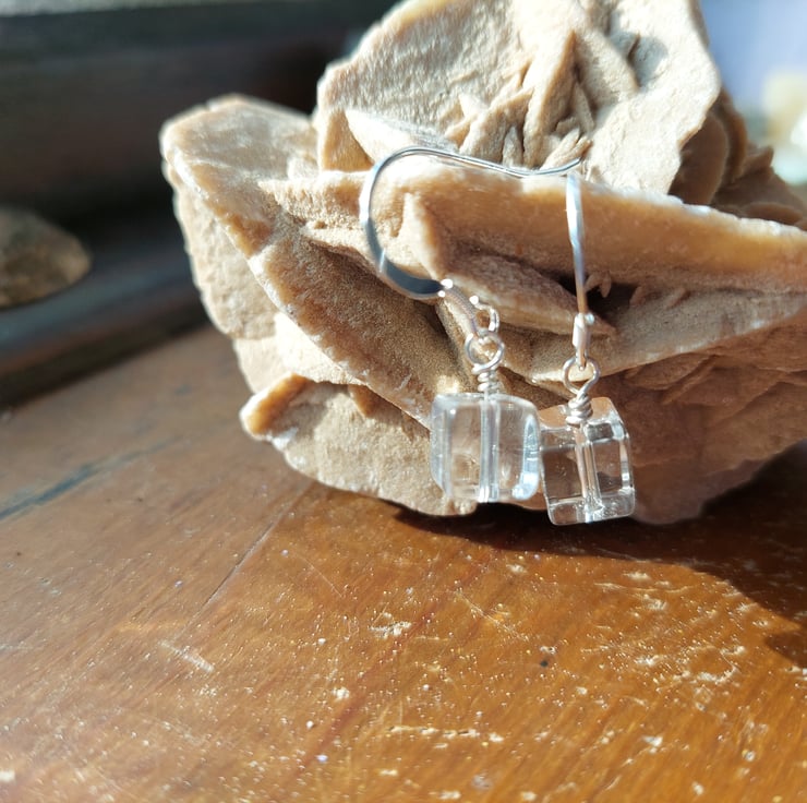 These earrings simple but elegant and have tonnes of movement and sparkle. The cube is 8mm in length. They drop 14mm from the bottom of the sterling silver hook.