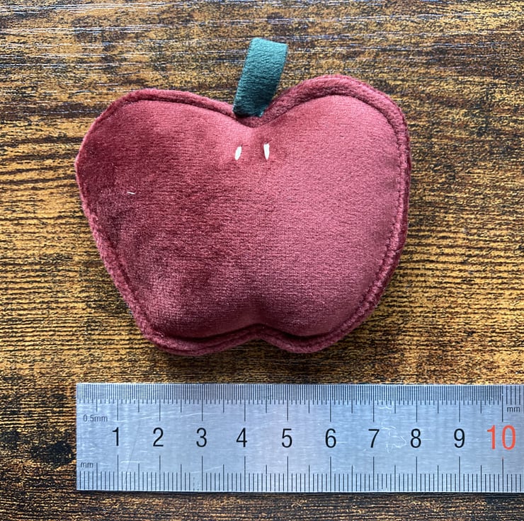 Apple is made from plush red velvet fabric and filled with premium organic catnip, toy stuffing and has crinkle paper for added crunch.