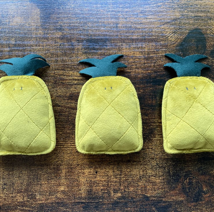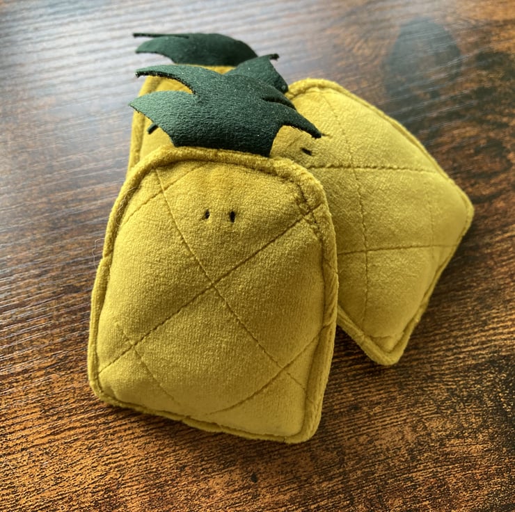Pineapple is made from plush yellow velvet fabric and filled with premium organic catnip and toy stuffing.