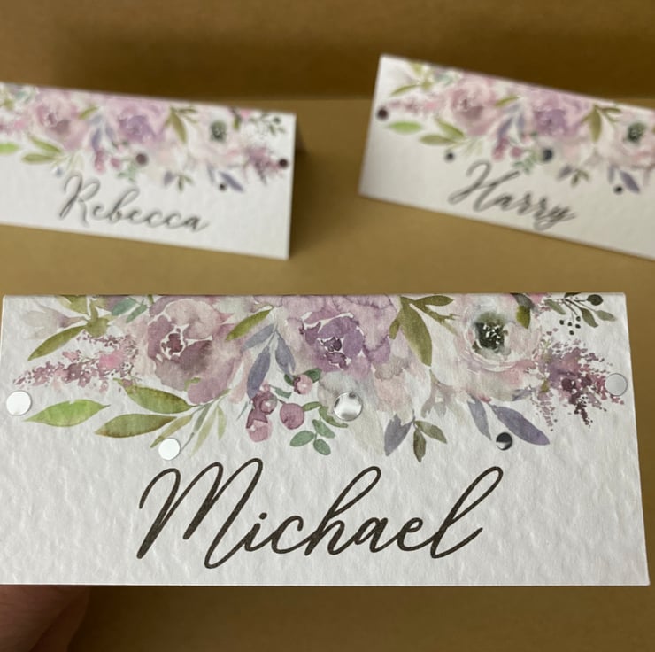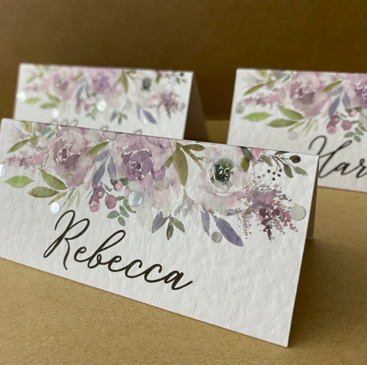 6x place CARDS dusty blush pink mauve flowers table foliage name wedding decor