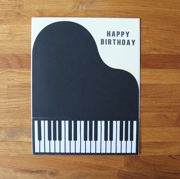 The greetings card is white with a white liner,and the matt and layer is cream with Happy Birthday as the sentiment, and I have design the front with piano keys and the shape of the grand piano lid, the card is blank inside for your special message.