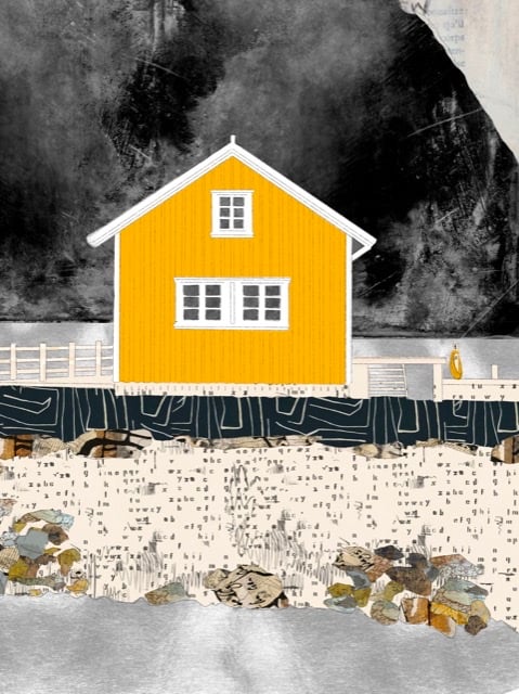Beautiful collage pieces come together to create an atmospheric artwork.
