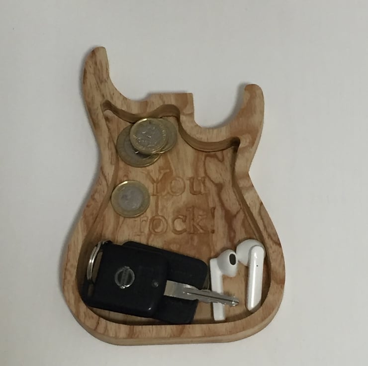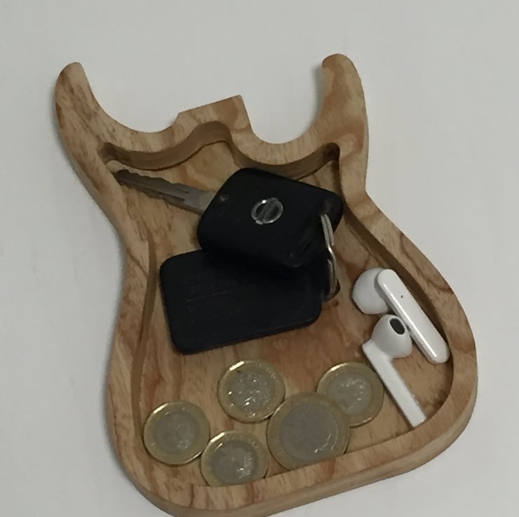 Put your pocket contents in this Ash guitar shaped catch all tray.