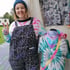 Using a cotton sock, I apply liquid dye in vibrant pink and purple.