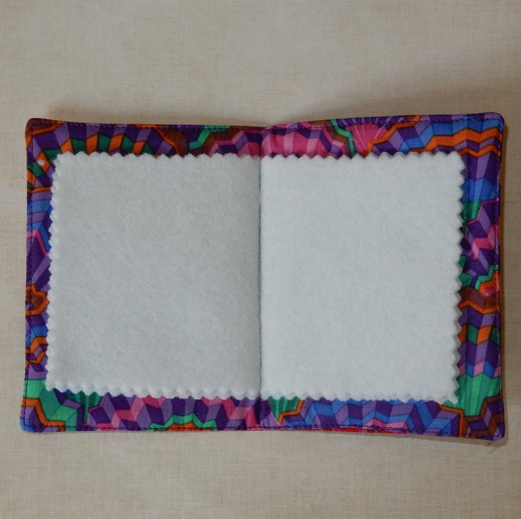 A beautiful bright quilted floral needle case, with contrast fabric as trim and lining. It measures approx. 4.5 x 3 inches , and it has a layer of wadding for protection and has four felt leaves for your pins and needles.