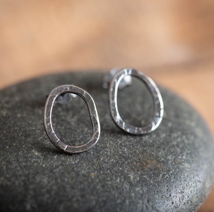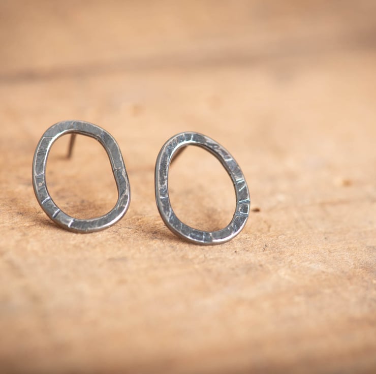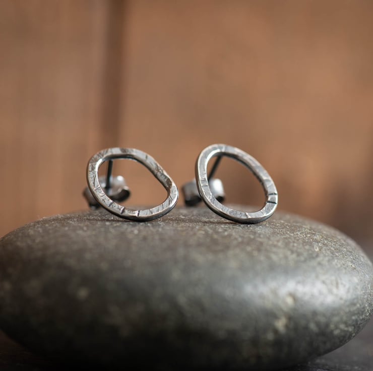 These earrings are handmade to order from recycled sterling silver. I hand shape and solder silver wire into these organic shapes, which I then textured using an old hammer. As they are hand formed, the shapes are not exactly the same, and the old hammer leaves an interesting texture, giving them plenty of character!