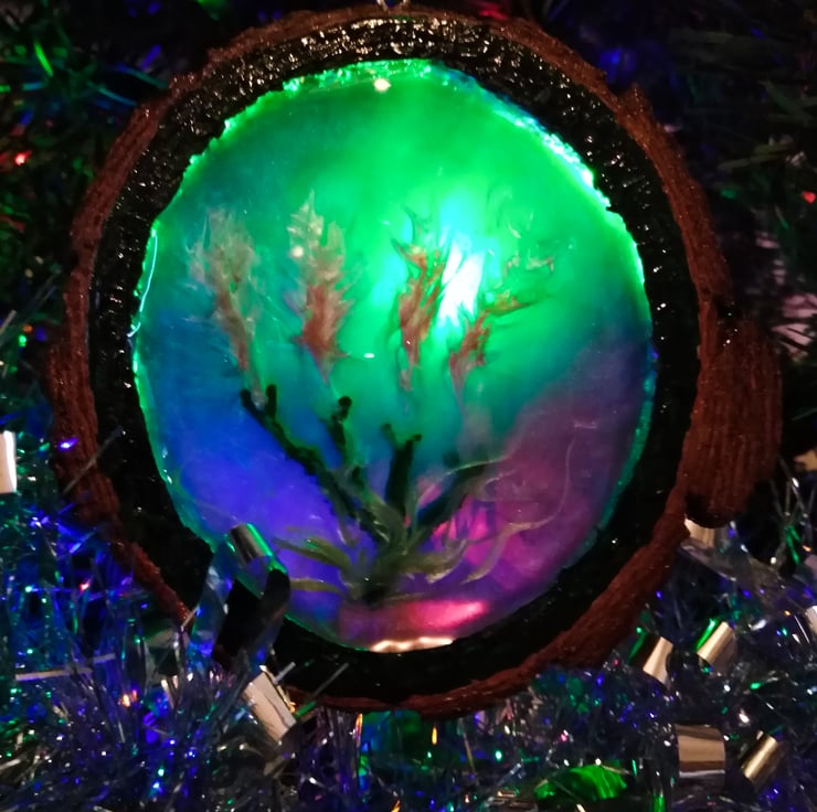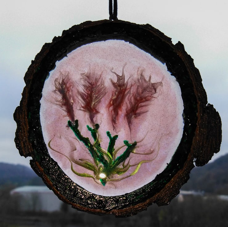 Either hang on the Christmas tree at Christmas time so the fairy lights can twinkle through the resin giving a fantasy glow or hang it on a door or window and use as a suncatcher.