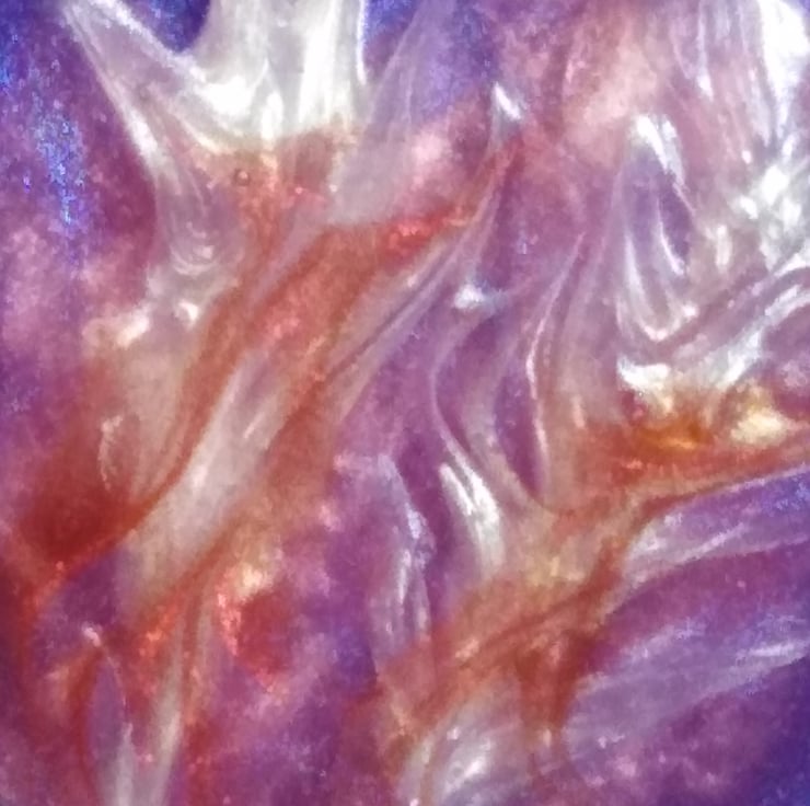 The cherry blossom has been painted with coloured resin and covered in several layers of softly coloured resin making it transparent and finished off with a green swirl