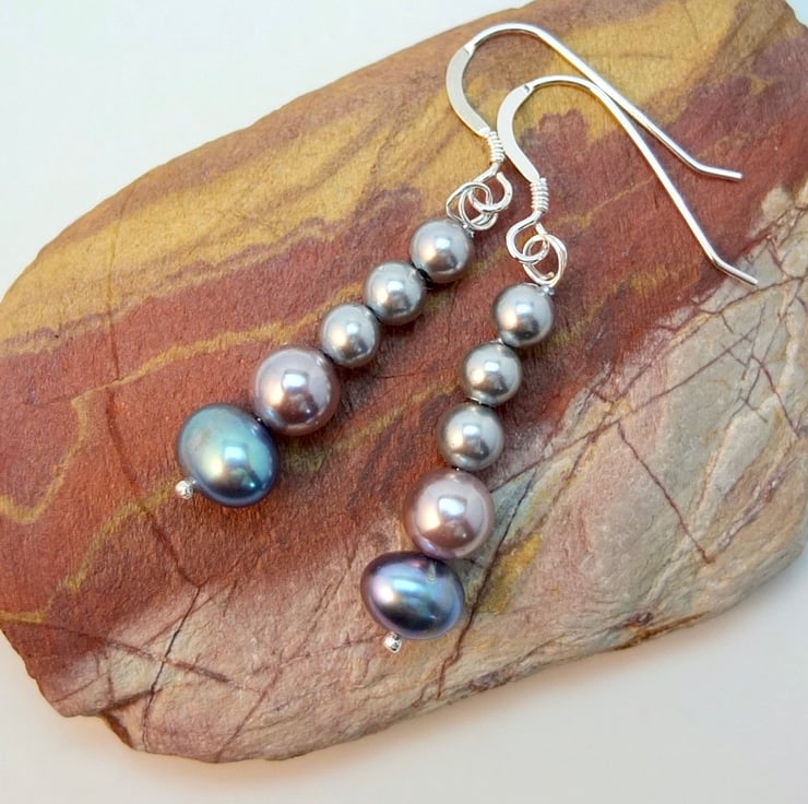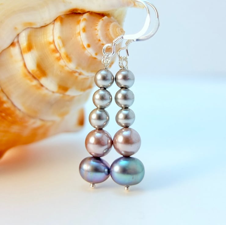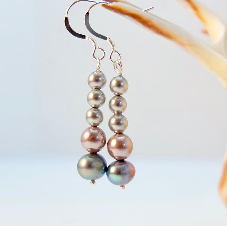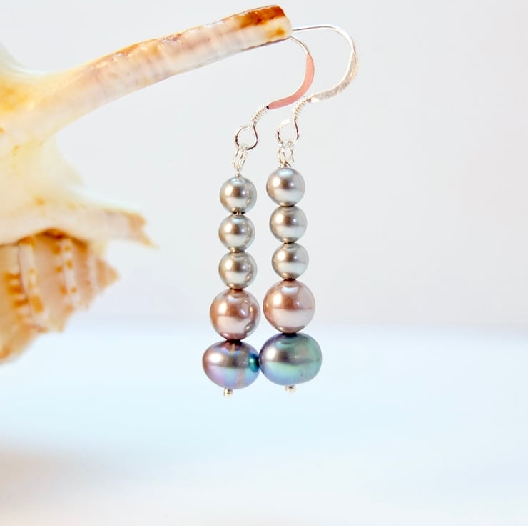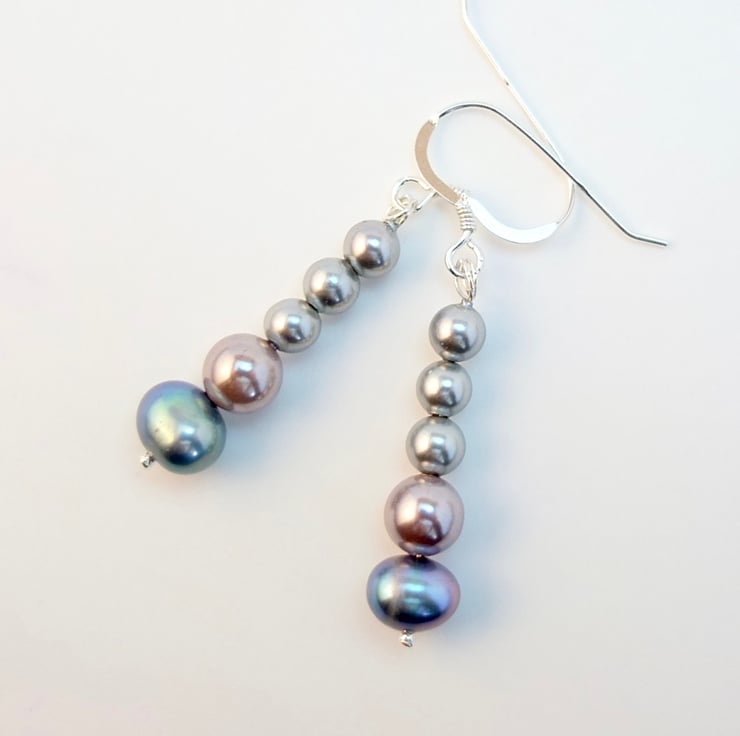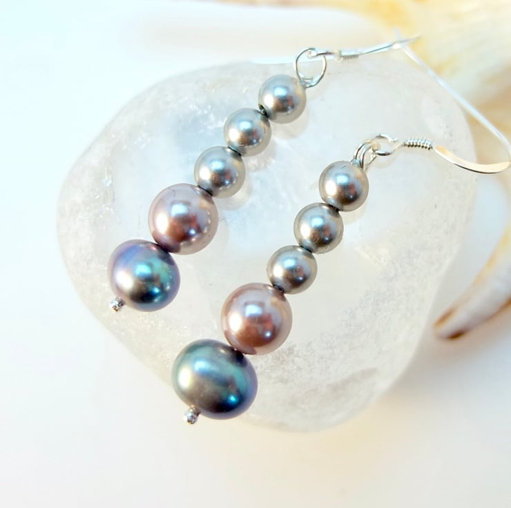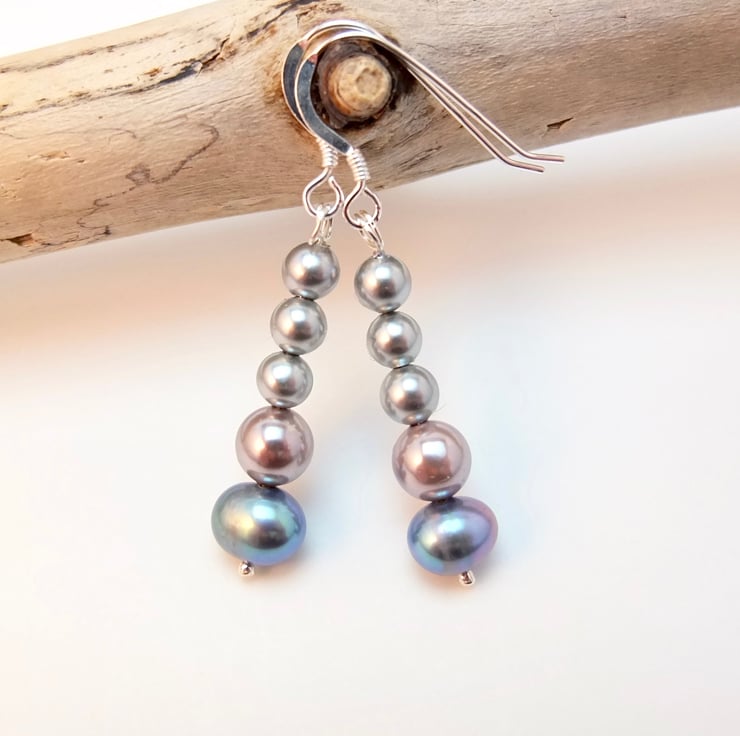 The bottom pearl is a Freshwater potato Pearl in the colour "silver-grey peacock".