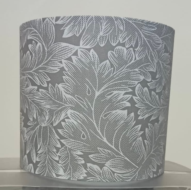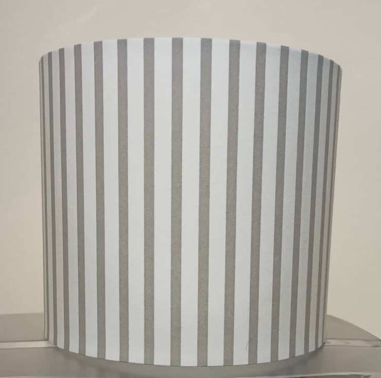 Beautiful modern grey lampshades, available in 3 designs, polka dot, striped & leaf, and in various sizes.