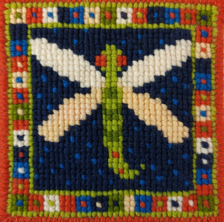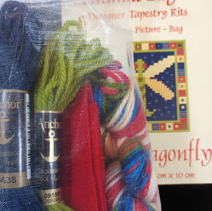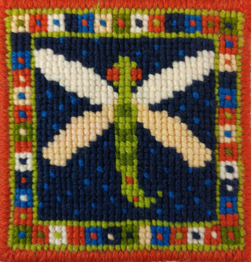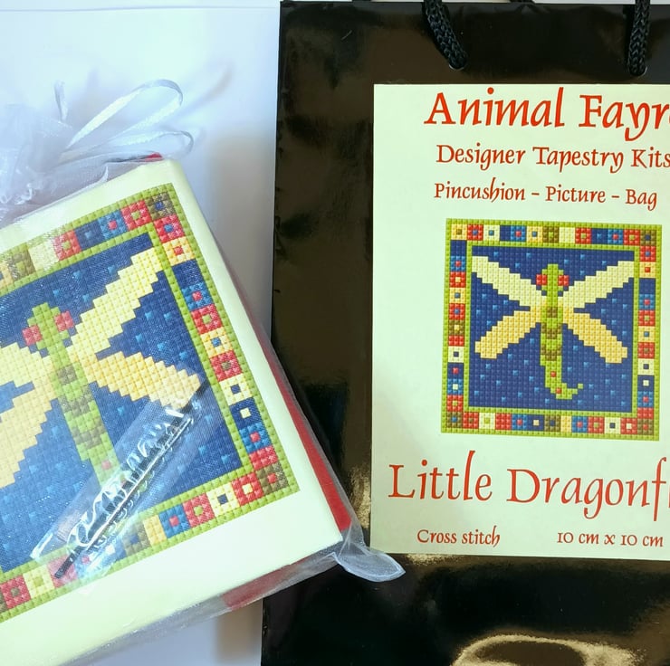 One of a series of charming pincushions with animal designs. This pack is for a dragonfly design, it's a pincushion in the photo, but also would make a great wee picture or bag front.